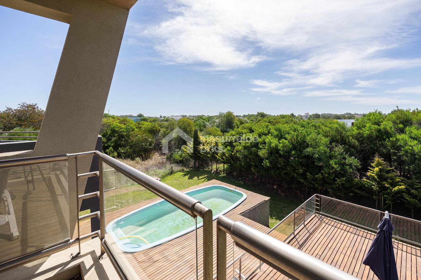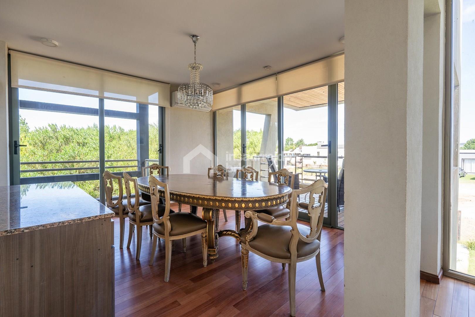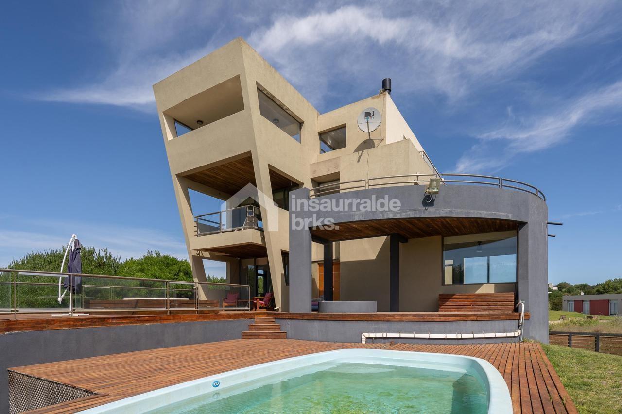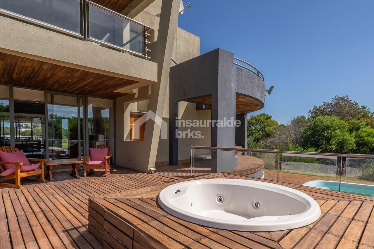 Importante Casa a la venta en el exclusivo barrio Costa Esmeralda , con características de alta calidad y diseño innovador. Características de la Propiedad - Arquitectura y Acabados: Yeso en todos los ambientes, losa radiante con gas natural en todos los ambientes, porcelanato español en baños y revestimientos, piso de madera maciza en todos los ambientes excepto los húmedos. - Garage: Garage delantero con portón galvanizado, capacidad para 1 auto, 1 UTV, 1 moto o 1 auto/camioneta Ram y moto de agua. Garage trasero con capacidad para 2 autos. - Exterior: Piscina de 8x4, jacuzzi, parrilla con quincho en terraza, toilette en planta baja. - Habitaciones: Habitación en suite en planta baja con 40m2, escritorio, lavadero y habitación de servicio. En el primer piso, living-comedor integrado con sala de audio, habitación en suite. En el segundo piso, dos habitaciones en suite con jacuzzi y terraza propia, unidas por un puente de vidrio. - Terraza y Quincho: Terraza en el tercer piso con quincho y baño completo. - Seguridad y Confort: Todos los balcones con deck, barandas de acero inoxidable y vidrio blindex, DVH con vidrio laminado, cierre de doble punto. - Sistemas y Servicios: Sistema de riego automático, tanque elevado de 1500l cada uno, tablero trifásico central y tableros independientes en cada piso. Superficies - Superficie cubierta: 325,45 m2 - Superficie galpón: 63,00 m2 - Superficie semicubierta: 124,12 m2 - Total cubierta + semicubierta: 512,57 m2 - Superficie terrazas: 210,00 m2 - Superficie de lote: 1080 m2 Ubicación - Barrio Golf 1, Costa Esmeralda, Pinamar Estado - Óptimo estado, nada para hacerle de mantenimiento. No te pierdas esta oportunidad Si estás buscando una casa de lujo con características de alta calidad y diseño innovador en un exclusivo barrio de Pinamar, esta es tu oportunidad. ¡Contactanos para más información y para coordinar una visita!