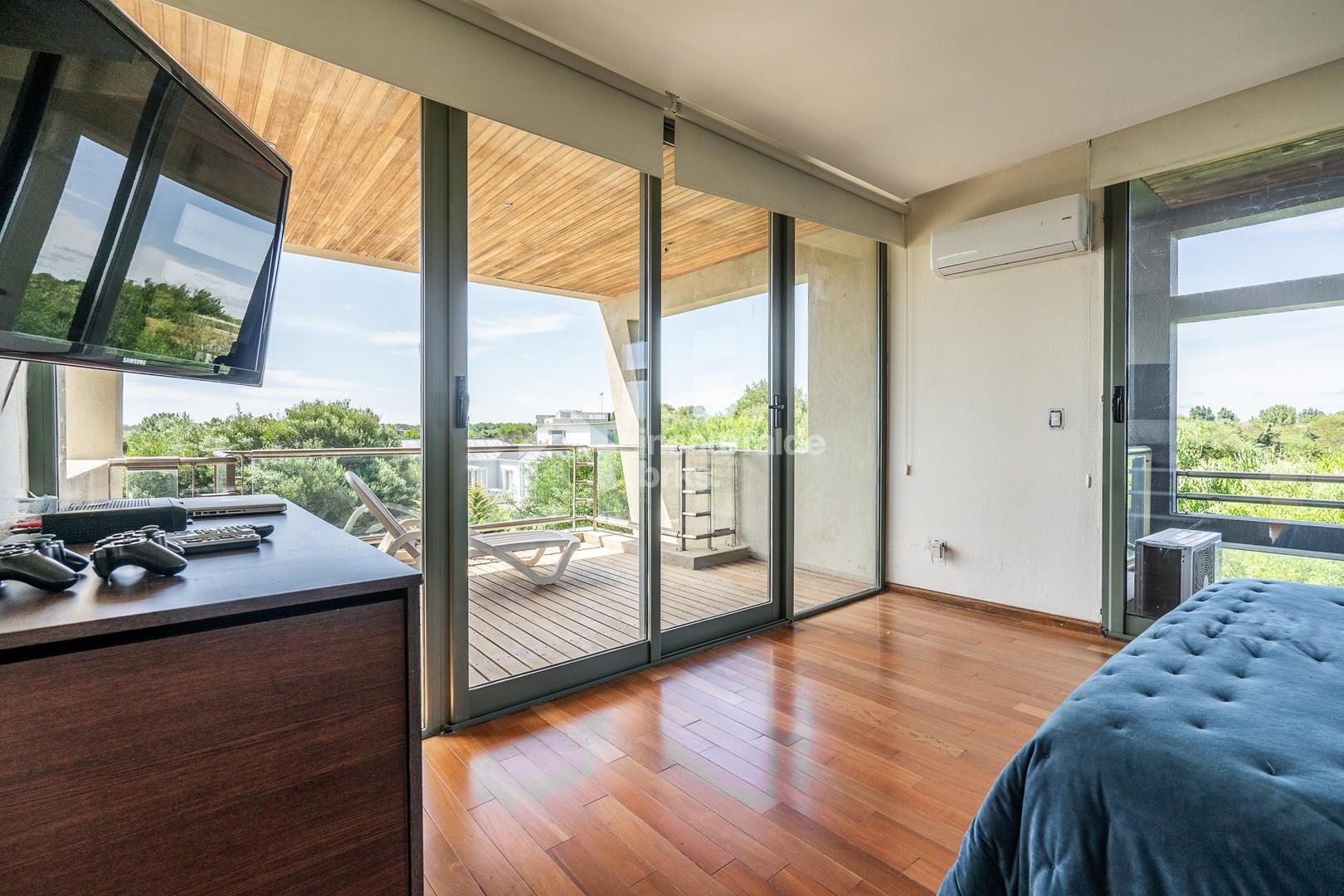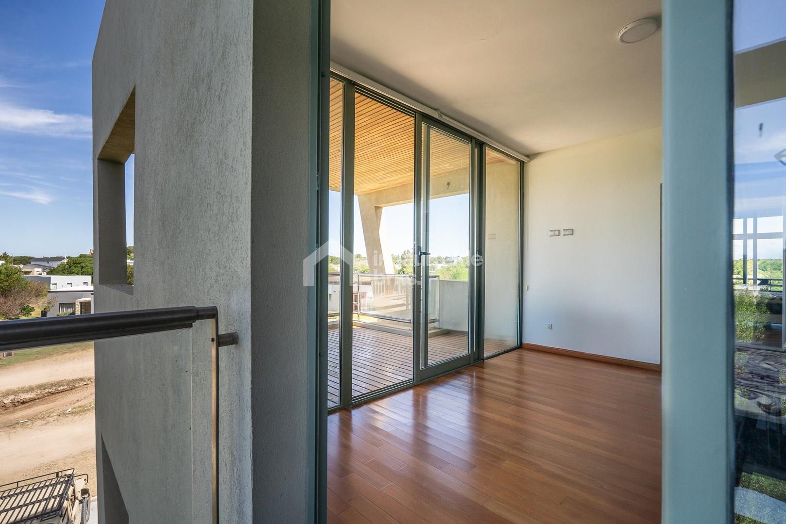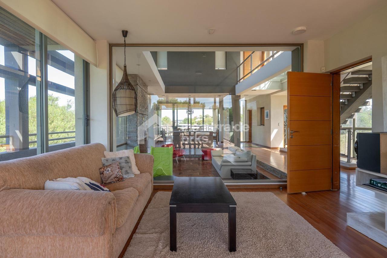 Importante Casa a la venta en el exclusivo barrio Costa Esmeralda , con características de alta calidad y diseño innovador. Características de la Propiedad - Arquitectura y Acabados: Yeso en todos los ambientes, losa radiante con gas natural en todos los ambientes, porcelanato español en baños y revestimientos, piso de madera maciza en todos los ambientes excepto los húmedos. - Garage: Garage delantero con portón galvanizado, capacidad para 1 auto, 1 UTV, 1 moto o 1 auto/camioneta Ram y moto de agua. Garage trasero con capacidad para 2 autos. - Exterior: Piscina de 8x4, jacuzzi, parrilla con quincho en terraza, toilette en planta baja. - Habitaciones: Habitación en suite en planta baja con 40m2, escritorio, lavadero y habitación de servicio. En el primer piso, living-comedor integrado con sala de audio, habitación en suite. En el segundo piso, dos habitaciones en suite con jacuzzi y terraza propia, unidas por un puente de vidrio. - Terraza y Quincho: Terraza en el tercer piso con quincho y baño completo. - Seguridad y Confort: Todos los balcones con deck, barandas de acero inoxidable y vidrio blindex, DVH con vidrio laminado, cierre de doble punto. - Sistemas y Servicios: Sistema de riego automático, tanque elevado de 1500l cada uno, tablero trifásico central y tableros independientes en cada piso. Superficies - Superficie cubierta: 325,45 m2 - Superficie galpón: 63,00 m2 - Superficie semicubierta: 124,12 m2 - Total cubierta + semicubierta: 512,57 m2 - Superficie terrazas: 210,00 m2 - Superficie de lote: 1080 m2 Ubicación - Barrio Golf 1, Costa Esmeralda, Pinamar Estado - Óptimo estado, nada para hacerle de mantenimiento. No te pierdas esta oportunidad Si estás buscando una casa de lujo con características de alta calidad y diseño innovador en un exclusivo barrio de Pinamar, esta es tu oportunidad. ¡Contactanos para más información y para coordinar una visita!