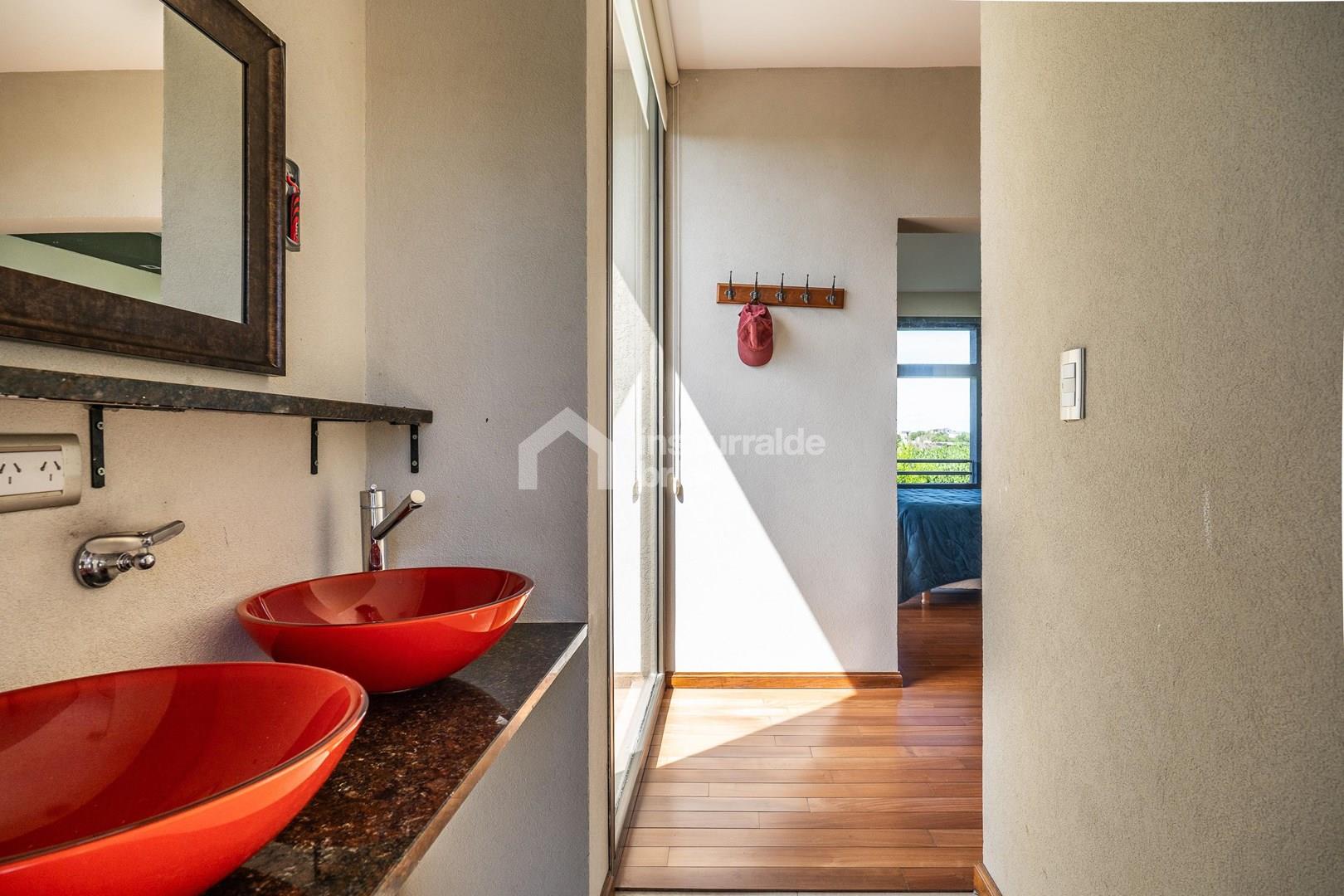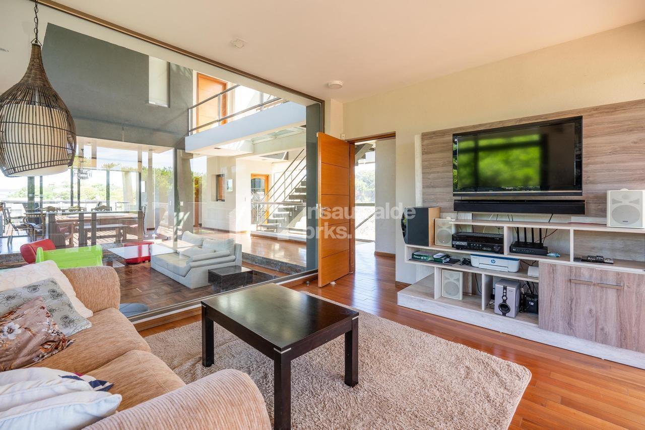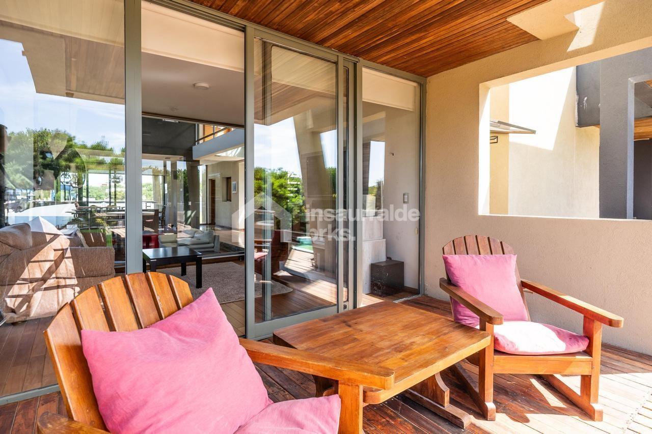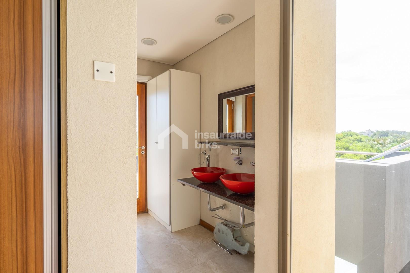 Importante Casa a la venta en el exclusivo barrio Costa Esmeralda , con características de alta calidad y diseño innovador. Características de la Propiedad - Arquitectura y Acabados: Yeso en todos los ambientes, losa radiante con gas natural en todos los ambientes, porcelanato español en baños y revestimientos, piso de madera maciza en todos los ambientes excepto los húmedos. - Garage: Garage delantero con portón galvanizado, capacidad para 1 auto, 1 UTV, 1 moto o 1 auto/camioneta Ram y moto de agua. Garage trasero con capacidad para 2 autos. - Exterior: Piscina de 8x4, jacuzzi, parrilla con quincho en terraza, toilette en planta baja. - Habitaciones: Habitación en suite en planta baja con 40m2, escritorio, lavadero y habitación de servicio. En el primer piso, living-comedor integrado con sala de audio, habitación en suite. En el segundo piso, dos habitaciones en suite con jacuzzi y terraza propia, unidas por un puente de vidrio. - Terraza y Quincho: Terraza en el tercer piso con quincho y baño completo. - Seguridad y Confort: Todos los balcones con deck, barandas de acero inoxidable y vidrio blindex, DVH con vidrio laminado, cierre de doble punto. - Sistemas y Servicios: Sistema de riego automático, tanque elevado de 1500l cada uno, tablero trifásico central y tableros independientes en cada piso. Superficies - Superficie cubierta: 325,45 m2 - Superficie galpón: 63,00 m2 - Superficie semicubierta: 124,12 m2 - Total cubierta + semicubierta: 512,57 m2 - Superficie terrazas: 210,00 m2 - Superficie de lote: 1080 m2 Ubicación - Barrio Golf 1, Costa Esmeralda, Pinamar Estado - Óptimo estado, nada para hacerle de mantenimiento. No te pierdas esta oportunidad Si estás buscando una casa de lujo con características de alta calidad y diseño innovador en un exclusivo barrio de Pinamar, esta es tu oportunidad. ¡Contactanos para más información y para coordinar una visita!