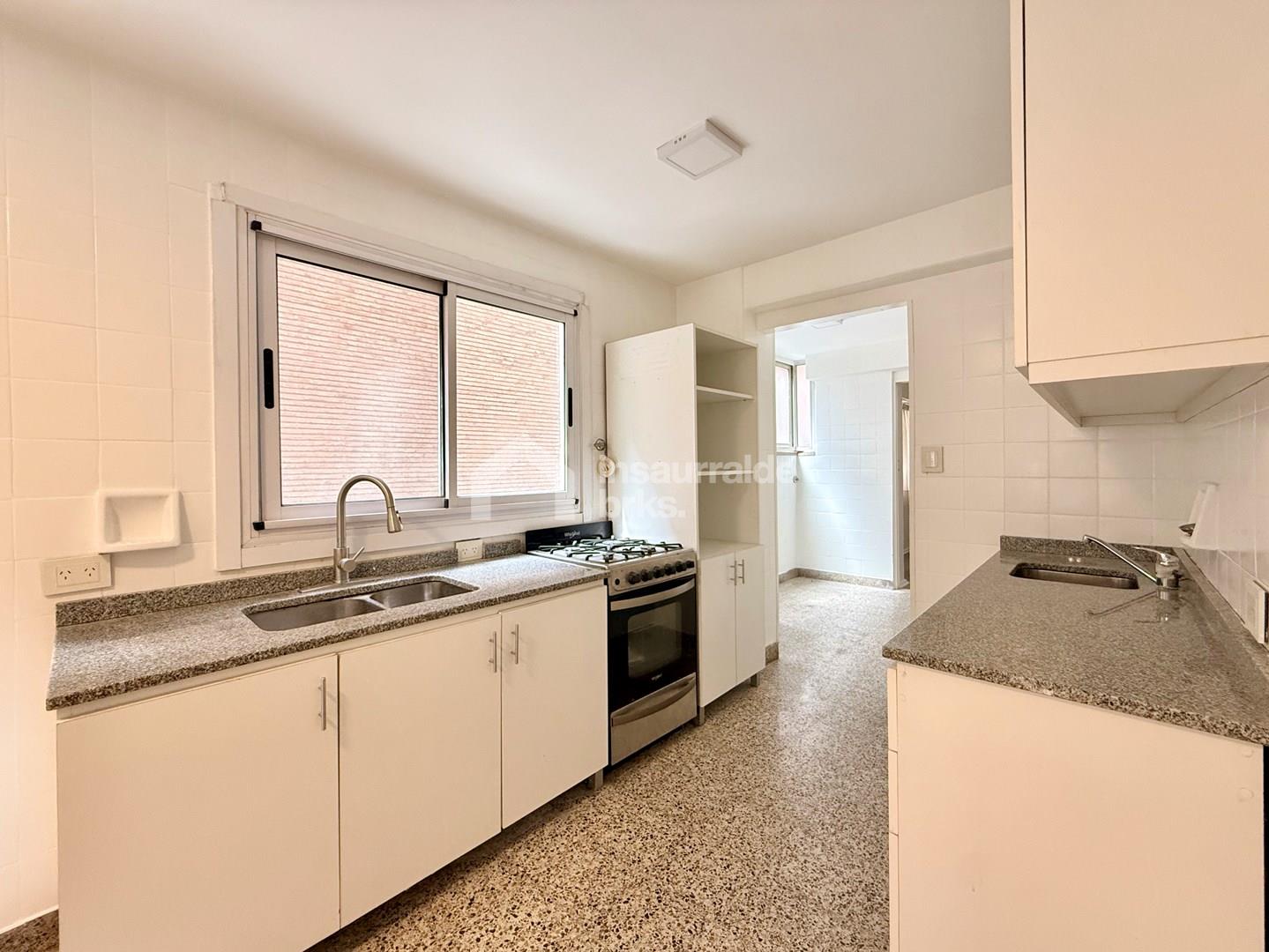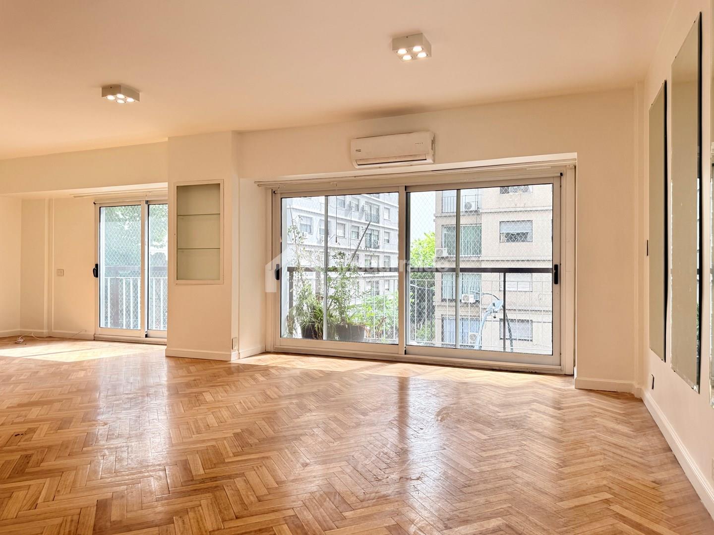 Semipiso en venta sobre Av. Santa Fe y Laprida acceso privado desde el ascensor. Al ingresar desde el ascensor, el acceso es exclusivo: la puerta se abre directamente al departamento. Un amplio living comedor en “L” con salida a un balcón corrido sobre Av. Santa Fe brinda gran luminosidad y vistas abiertas. En el ala derecha, el área funcional cuenta con una cocina con comedor diario, muebles bajo mesada y alacenas, espacio para heladera a ambos lados y acceso de servicio con salida a las escaleras. A continuación se ubica el lavadero independiente, con toilette y habitación de servicio, que puede funcionar como escritorio o estudio. En el ala izquierda, más privada, se encuentra el sector de dormitorios: tres amplios cuartos, todos con placards y salida a un balcón sobre Laprida, más dos baños completos (uno en suite). Un paso interno comunica la cocina con las habitaciones sin atravesar el living, aportando comodidad y circulación independiente. El departamento fue recientemente renovado: pisos de madera restaurados, aberturas nuevas con DVH, pintura completa, y placards terminados a nuevo. Calefacción por losa radiante. Doble acceso (principal y de servicio). Baulera en la ultima planta. Ubicación inmejorable, sobre Av. Santa Fe, a metros del Subte D, múltiples líneas de colectivos, comercios, cafés y servicios, con fácil acceso a Recoleta, Palermo y Barrio Norte. MUDATE A LA VIDA DE TUS SUEÑOS