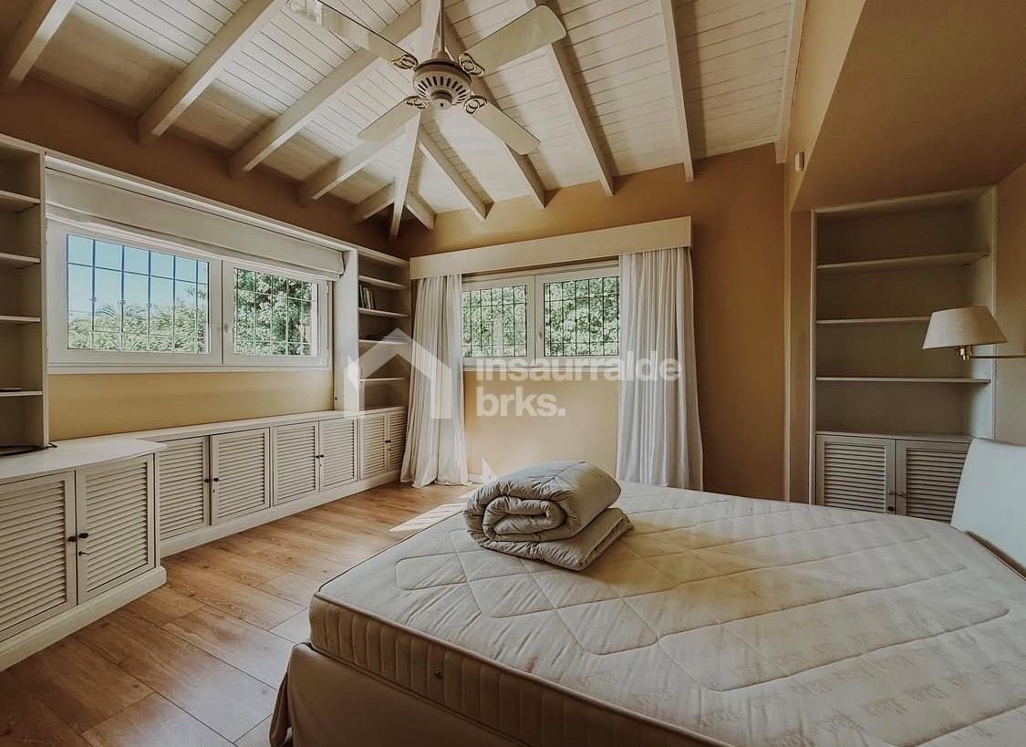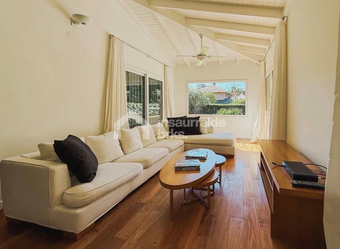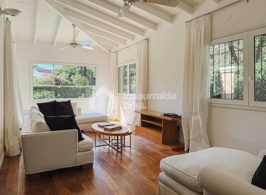 Alquiler Casa Amoblada – Exclusiva en zona del Bajo de San Isidro, Calle Elortondo esquina Uriburu. Disponible primeros días de febrero – Contrato por 1 o 2 años ( consultar por disponibilidad anterior a la publicada) En una de las zonas más buscadas y tranquilas del Bajo de San Isidro, sobre la prestigiosa calle Elortondo, que finaliza en un cul-de-sac garantizando privacidad y seguridad, se encuentra esta hermosa y luminosa casa amoblada, ideal para quienes buscan confort, naturaleza y excelente calidad de vida. Planta Baja • Hall de recepción • Amplio living comedor con vista abierta al jardín, orientación norte, gran luminosidad y pisos tarugados de madera • Comedor independiente • Cocina amplia con excelente espacio de guardado y gran comedor diario • Lavadero • Dependencia de servicio con baño • Dormitorio en planta baja / escritorio • Toilette • Cochera cubierta para auto o camioneta • Segunda cochera semicubierta, conectada con un patio lateral Exterior • Hermoso jardín parquizado • Agradable galería con parrilla y ventilador • Pileta revestida en venecitas • Riego automático Planta Alta • Master suite de generosas dimensiones, con vestidor y placard • Dos dormitorios amplios que comparten baño completo compartimentado • Cuarto dormitorio adicional o playroom La casa se alquila totalmente amoblada Contrato disponible por 1 o 2 años. Condiciones y requisitos • Valor del alquiler: en dólares • Mes de alquiler adelantado • Dos meses de depósito en garantía • Honorarios inmobiliarios: 5% del total del contrato • Garantía propietaria (Provincia o CABA) o Garantía tipo FINAER.