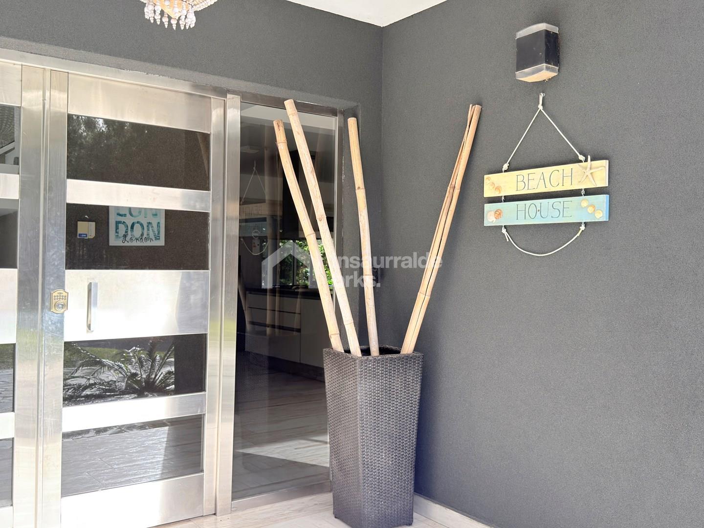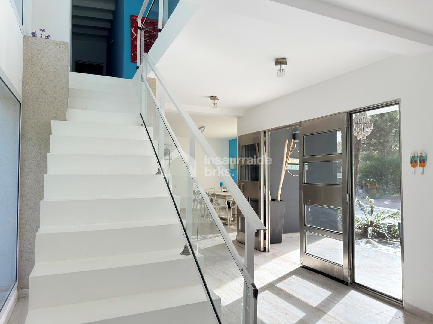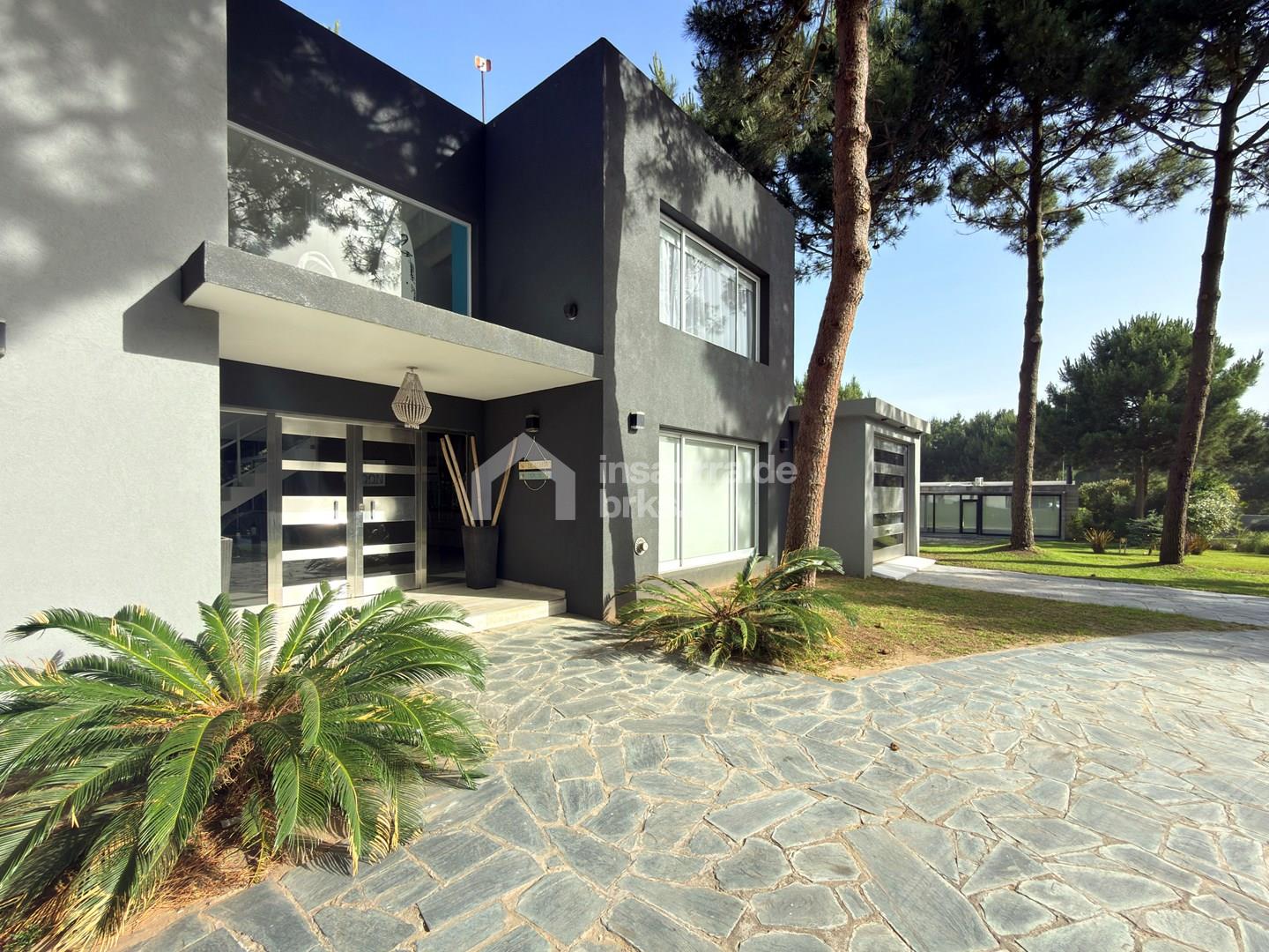 EXCLUSIVA PROPIEDAD EN COSTA ESMERALDA – BARRIO GOLF Casa moderna en esquina dentro del prestigioso Barrio Golf de Costa Esmeralda. Con una superficie cubierta de 240 m², destaca por su diseño contemporáneo, excelente calidad constructiva y amplios ambientes con gran luminosidad. En planta baja se encuentra un hall de entrada, un amplio living-comedor con hogar, cocina con isla desayunadora central, muebles completos y espacio de family. También dispone de toilette de recepción, habitación de servicio con baño privado y cochera cubierta con portón automatizado. En este nivel, un gran quincho vidriado con parrilla y lavadero complementa el espacio, ideal para disfrutar todo el año. En planta alta cuenta con cuatro dormitorios y tres baños completos, dos de ellos en suite y dos que comparten otro baño. El exterior ofrece un jardín en esquina con fogón, rodeado de arboleda natural, además de piscina y sector de hidromasaje climatizados. Entre sus detalles destacados se incluyen aire acondicionado en todos los ambientes, calefactores tiro balanceado, amplias aberturas que garantizan luz natural en toda la casa y servicio de gas natural. Ubicada en Costa Esmeralda – Barrio Golf, esta propiedad combina entorno exclusivo, seguridad y naturaleza en uno de los sectores más buscados de la costa.