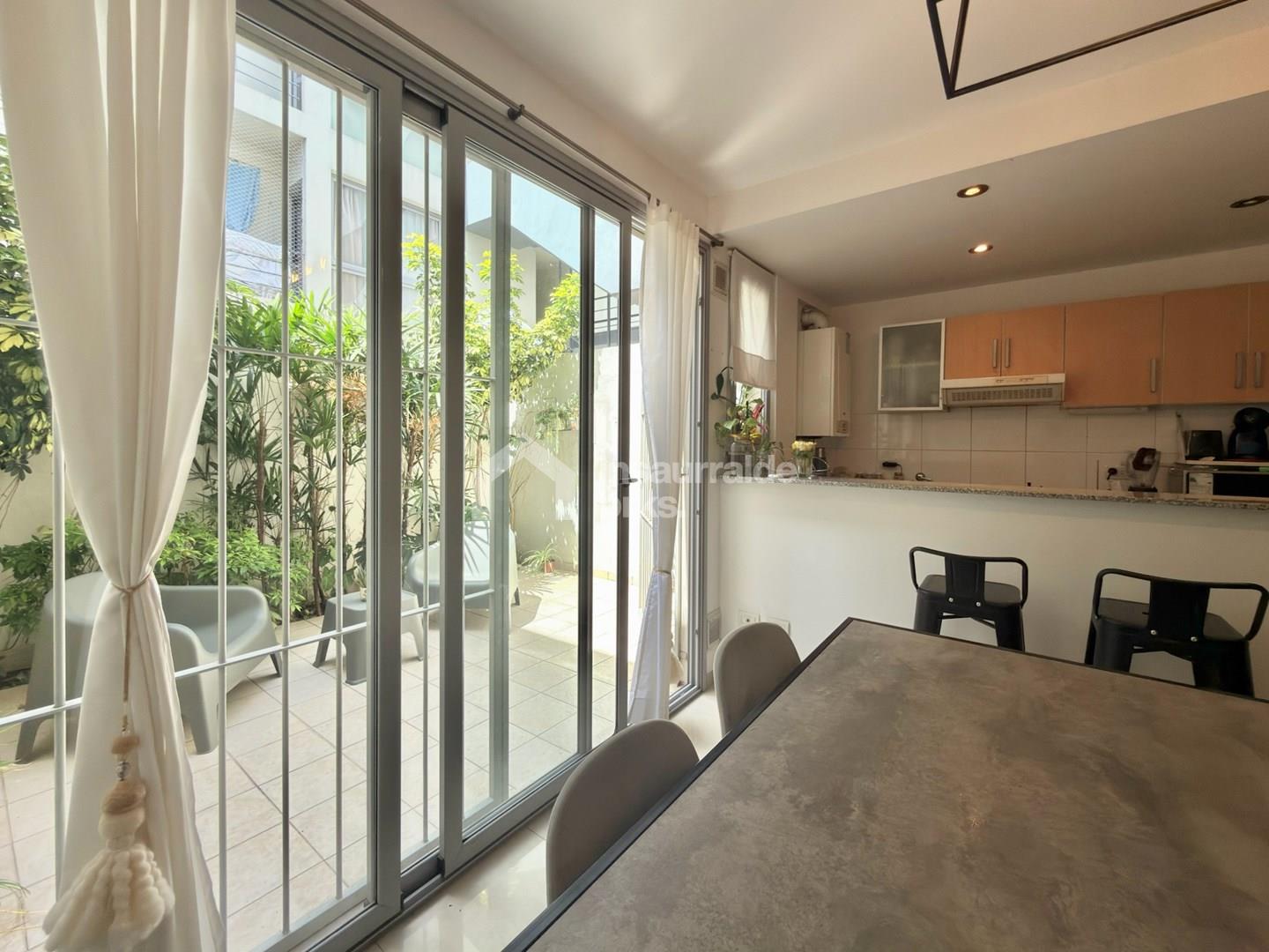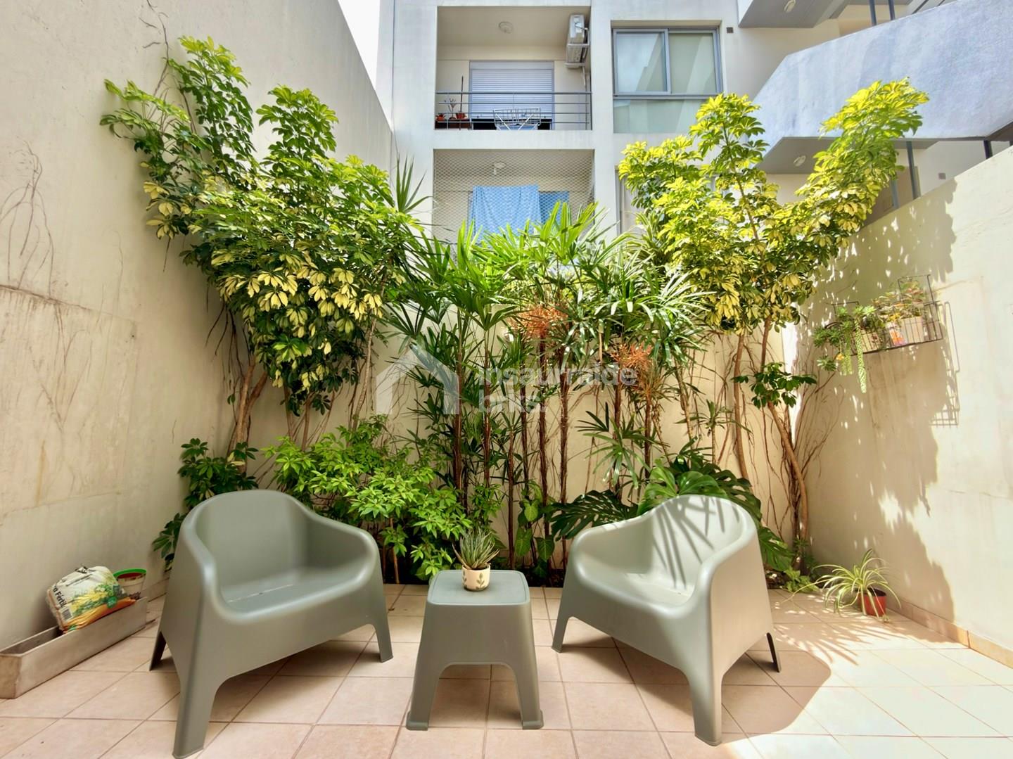 Departamento de 2 ambientes en planta baja, ubicado en José Ingenieros 1840, Olivos. Son 55 m² cubiertos más 15 m² de patio privado + cochera + Baulera, con excelente luz y rodeado de plantas. Living-comedor amplio con barra desayunadora, cocina completa con muebles bajo mesada, alacenas, campana extractora y espacio para lavarropas o lavavajillas. Desde el living se accede al patio, un espacio soleado y muy agradable para disfrutar al aire libre. Hall íntimo con placard adicional. Dormitorio de buenas dimensiones, con placard de pared a pared y de piso a techo. Baño completo con sector duchador. El edificio tiene solo tres pisos y cuenta con un amplio SUM en el último nivel, con cocina, baño, mesas, sillas y una terraza con vista abierta que rodea todo el SUM. En este nivel también se ubica la baulera del departamento. El departamento incluye cochera semicubierta con portón automatizado, dos equipos de aire acondicionado frío/calor y losa radiante. Expensas bajas! Una opción cómoda, funcional y con excelente calidad de vida en una zona consolidada de Olivos. MUDATE A LA VIDA DE TUS SUEÑOS!