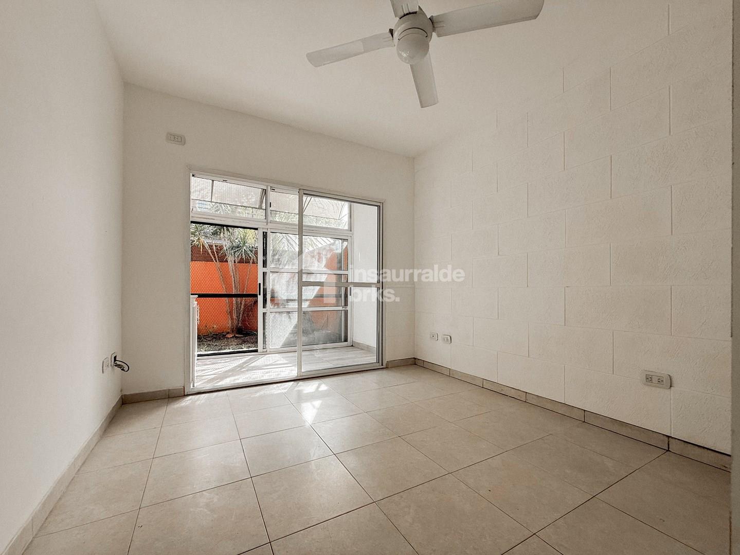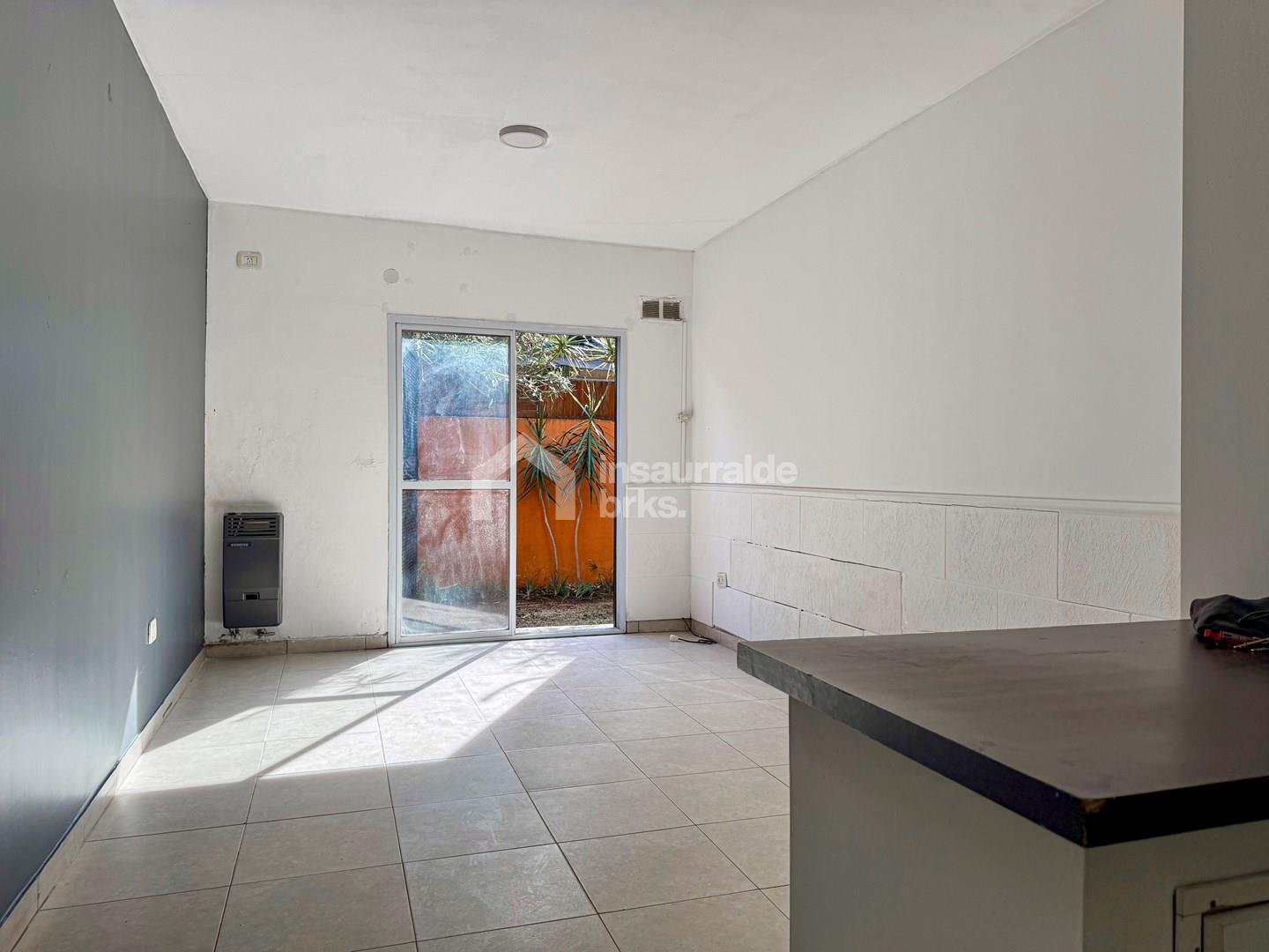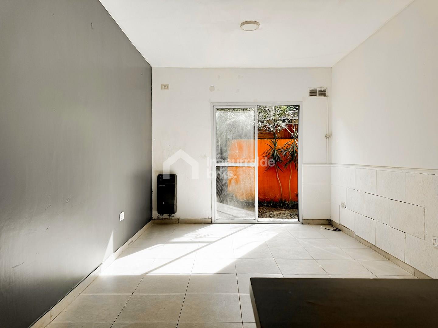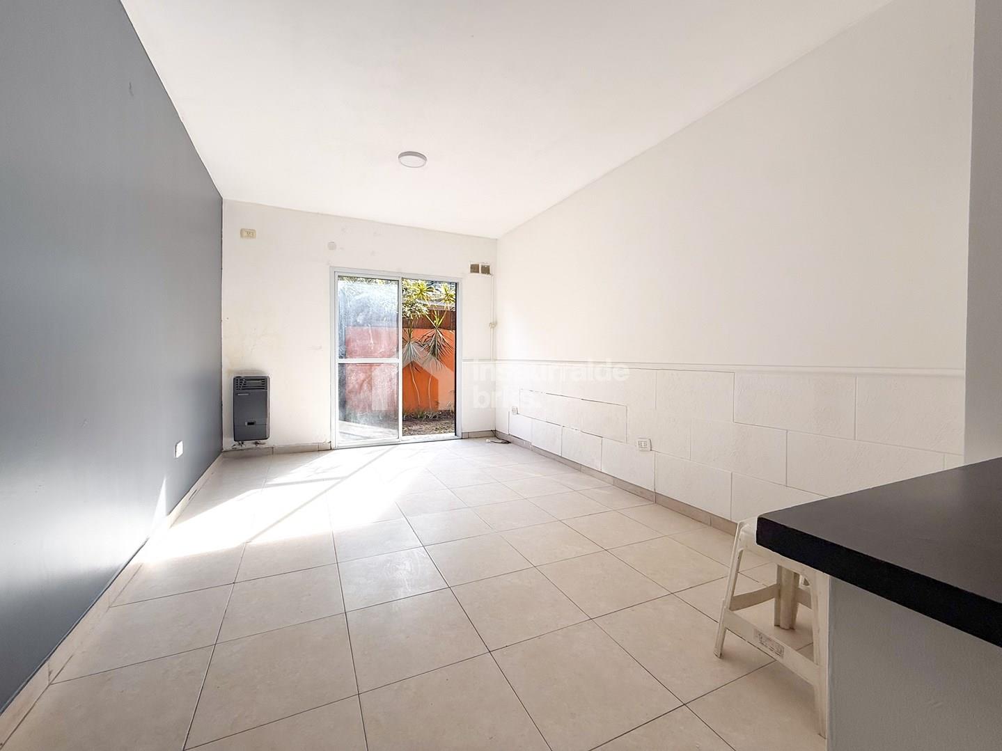 Excelente departamento de 2 ambientes con jardín propio, ubicado en un complejo cerrado con bajas expensas. Al ingresar por la entrada principal, encontramos un living muy luminoso con cocina integrada, equipada con barra desayunadora, muebles bajo mesada, alacenas y espacio para heladera. Desde el living se accede al jardín parquizado, orientado al oeste, ideal para disfrutar del sol de la tarde y momentos al aire libre. El dormitorio cuenta con placard y se complementa con un baño completo con bañera. De manera contigua al dormitorio se encuentra un ambiente cubierto actualmente utilizado como lavadero, que ofrece múltiples posibilidades: extensión del cuarto, escritorio o espacio de guardado según necesidad. La unidad posee cochera semicubierta. El complejo presenta un entorno tranquilo, ordenado y seguro, con bajas expensas. La propiedad se encuentra en muy buen estado general, recién pintada y con reparaciones integrales realizadas. El jardín fue recientemente sembrado con césped, aportando un espacio verde renovado y disfrutable. Una opción funcional, cómoda y con gran potencial de uso, tanto para vivienda como para inversión.